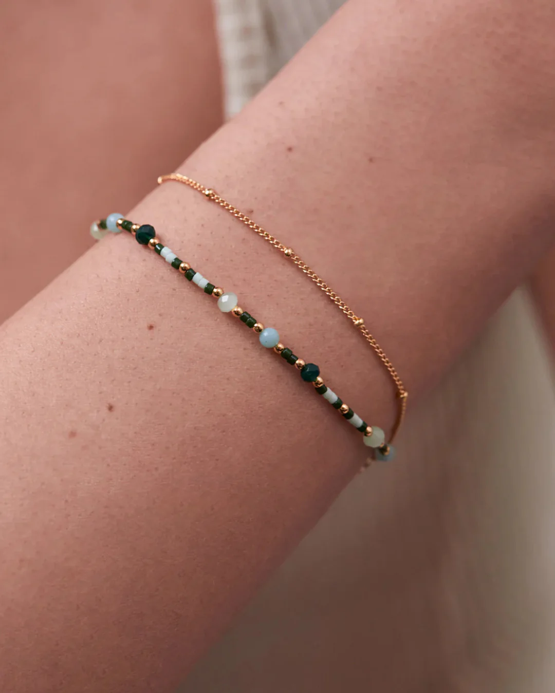 ESTELLA BARTLETT - BRACELET -MINI GREEN GEMSTONE CHAIN DUO