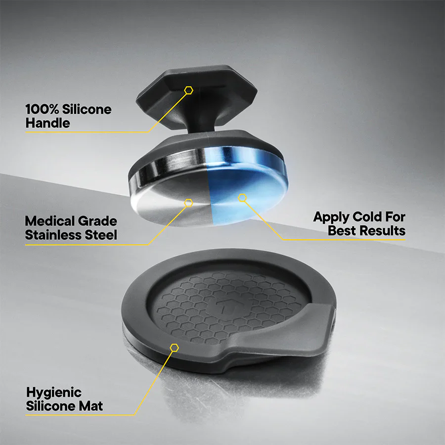 Reduce swelling and puffiness around your eyes with The Endswell Face Tool. This combat-sports inspired medical grade stainless steel facial tool is designed to reduce dark circles, and give a smooth, toned and more lifted appearance to your skin. Features a custom silicone handle and hygiene mat.